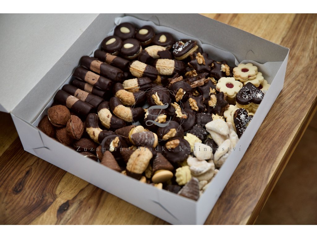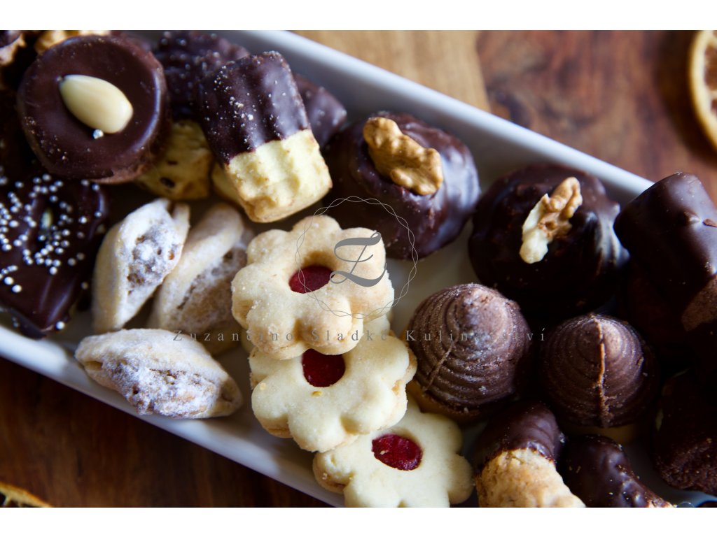 Jedná se o cukroví krémové - ořechové košíčky, babiččiny rohlíčky, střapáče, ořechy, černé trubičky, Išelské dortíčky, likérová srdíčka