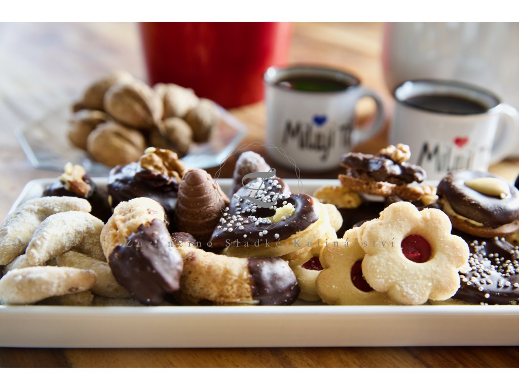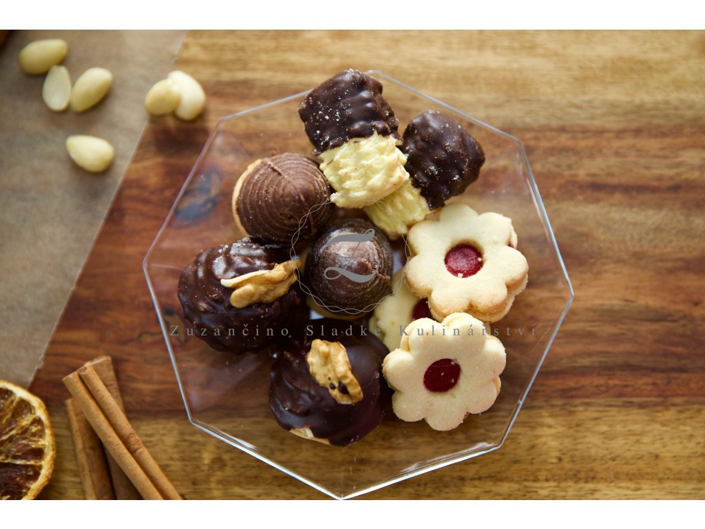 Jedná se o mix 11 druhů cukroví: krémové a suché (Vosí hnízda v případě zájmu)